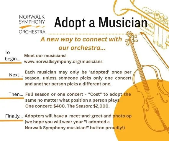 As an Individual Supporter or Corporate Sponsor, you ensure that the Norwalk Symphony can continue to bring great music, inspiring performers, and educational programs to our community. Click here for our sponsorship information.